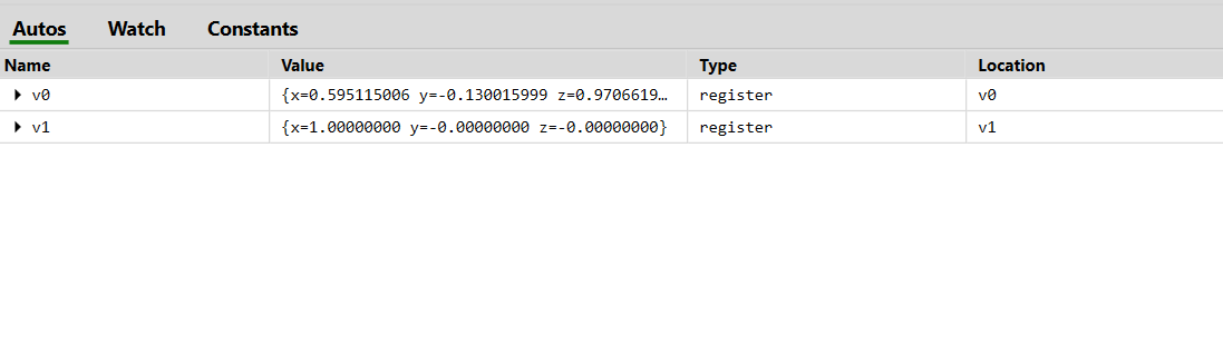 visual studio와 똑같이 클릭해서 중단점을 만들고 멈춰가면서 디버깅할 수 있다. 프로그램이 중단점에 멈추면 아래처럼 현재 쉐이더 내부에서 쓰이는 변수를 볼 수 있다.