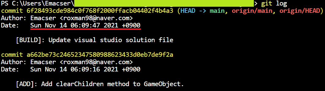 이처럼 git log로 commit 의 author date를 알 수 있다.
