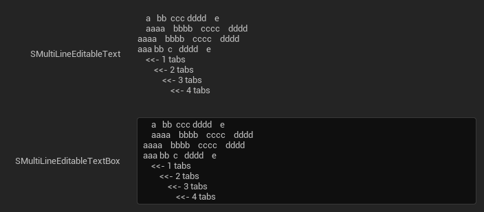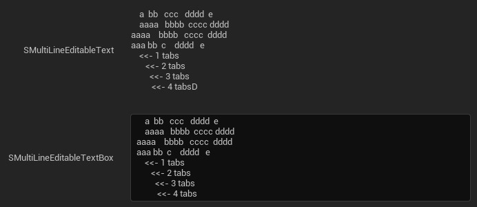It might looks a little bit different from vscode because tab width of UE default font is smaller than 2 spaces.
