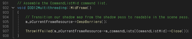 MidFrame() 함수에서는 FrameResource::SwapBarriers() 함수를 호출한다.