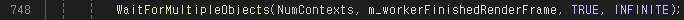 이제 메인스레드는 모든 Worker Thread가 Scene Pass에 필요한 Command List를 만들 때까지 기다린다.